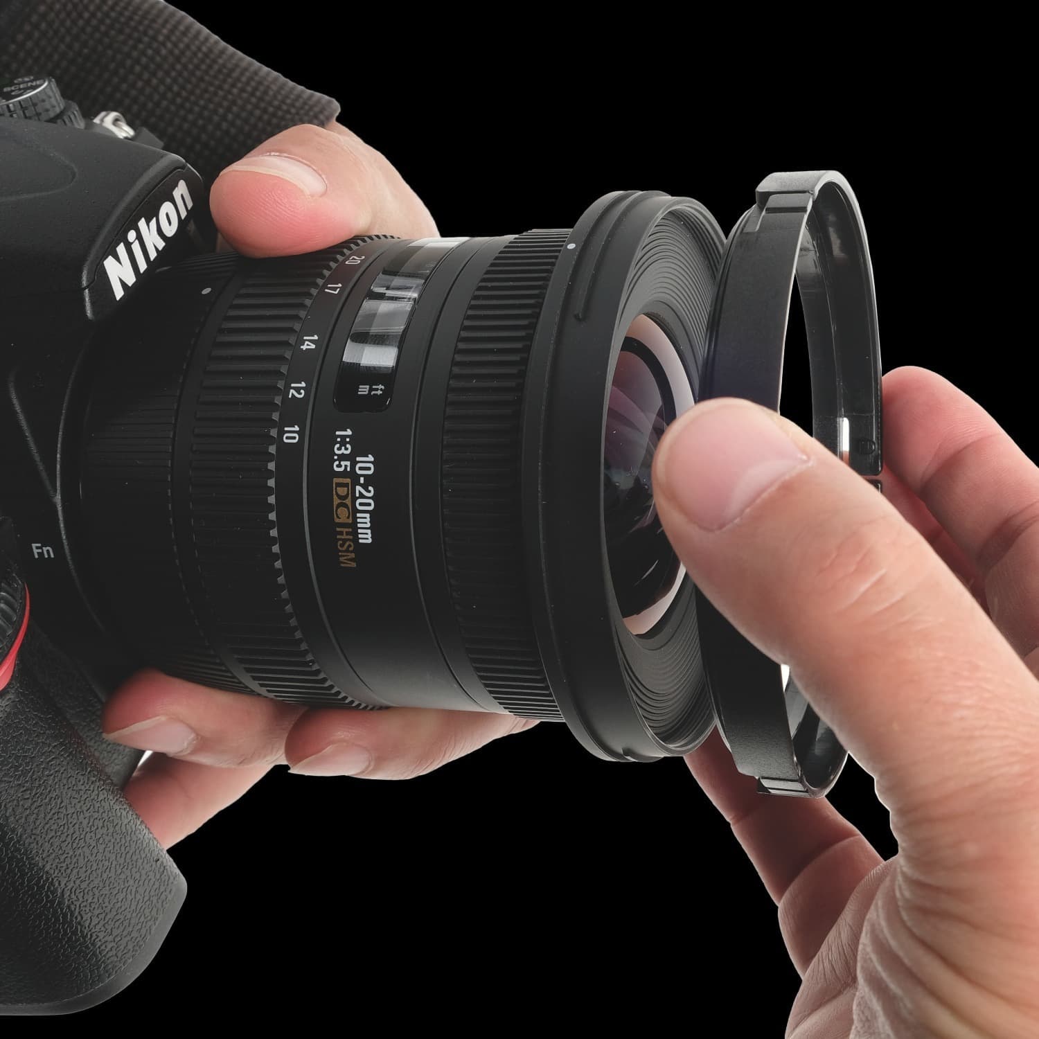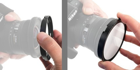 バヨネットマウントステップリングを使用して ExpoDisc v3 をレンズに取り付けます