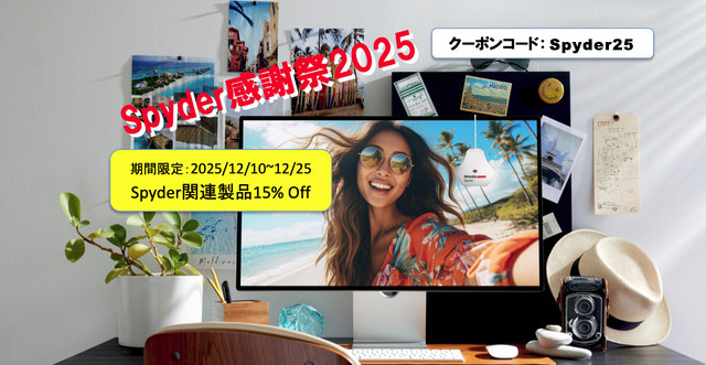 イメージビジョン株式会社は、日本総代理店を務める DatacolorSpyder製品の25周年感謝セールを、2025年12月10日(水)から12月25日(木)までの期間限定で実施いたします。期間中、イメージビジョン公式オンラインストアにて、Datacolor 社のSpyder製品が クーポンコードのご利用により15% OFFの特別価格でお求めいただけます。今回のキャンペーンでは、新製品「LightColor Meter」や最新の「Spyder シリーズ」も対象に含まれております。