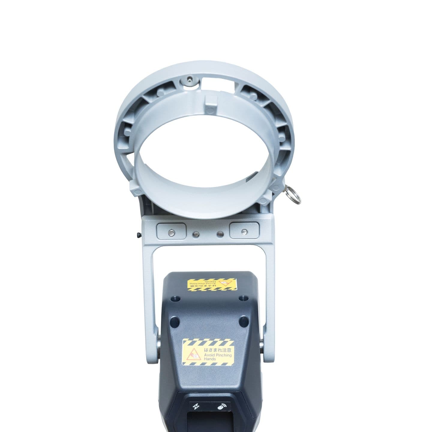 | Move Light GoのBowensマウント部分は正面のネジ(画像内の赤い矢印の2箇所)を緩め、サイドのつまみを青い矢印の方向へスライドすることでる外すことが可能となっている。 |